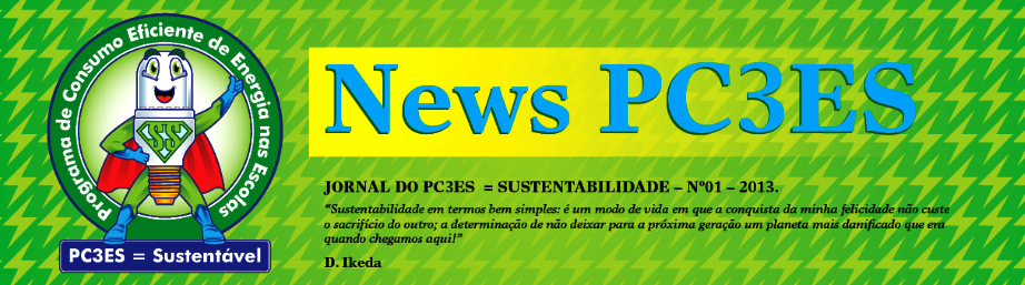 A COMUNICAÇÃO E A TROCA DE EXPERIÊNCIAS VIVIDAS ENTRE ALUNOS E PROFESSORES DAS ESCOLAS INTEGRADAS AO PROGRAMA PC3ES SERÁ ESTIMULADA ATRAVÉS DE UM JORNAL QUE CIRCULARÁ NAS ESCOLAS ENTRE ALUNOS E PROFESSORES PARA TROCA DE EXPERIÊNCIAS DOS TRABALHOS E PESQUISAS, BEM COMO OS RESULTADOS DO TEMA TRABALHADO: CONSUMO DE ENERGIA DE FORMA EFICIENTE.