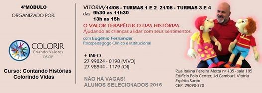 Trazido da experiência em mais de 15 anos com o Projeto Colorir iremos compartilhar nossa vivência neste 4º módulo do curso, ampliando nossos conhecimentos e estimulando a aprendizagem contínua de nossos participantes do curso Contando Histórias Colorindo Vidas.
