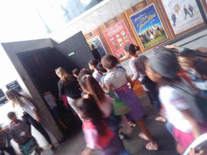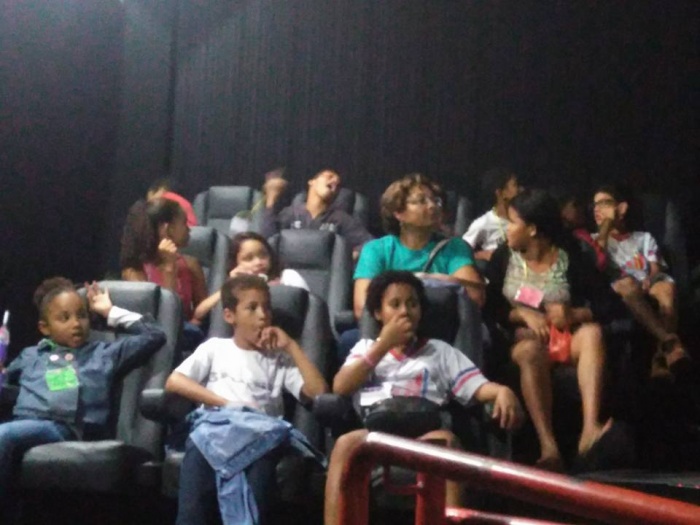 ALUNOS E PROFESSORES INSERIDOS NO PROJETO NA TRLHA DOS VALORES EM CENTRAL CARAPINA - EEEFM JONES JOSÉ DO NASCIMENTO ESCOLHERAM COMO PREMIAÇÃO IR AO CINEMA COMO FORMA DE INCENTIVAR OS ALUNOS NO QUE SE REFERE A CIDADANIA E AOS CUIDADOS COM A SEGURANÇA FERROVIÁRIA.