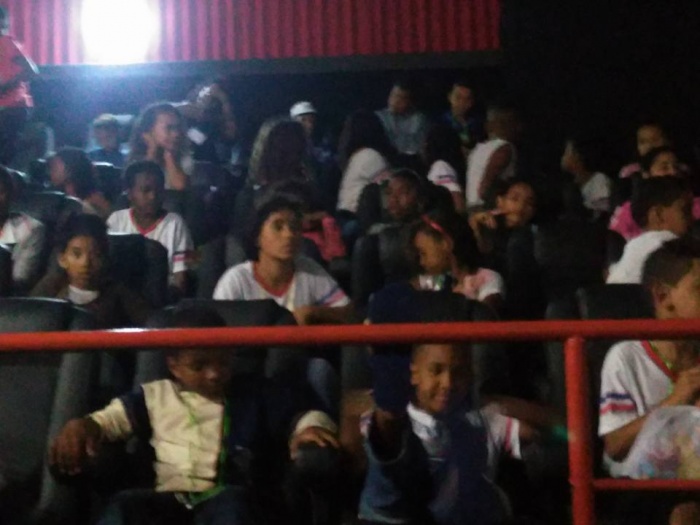 EM FORMA DE PRESENTEAR A DIREÇÃO, PROFESSORES E EQUIPE TÉCNICA DECIDIU UTILIZAR A VERBA DO NTV PARA FAZER UMA ATIVIDADE DIFERENCIADA E QUE MAIS DE 85% DOS ALUNOS NUNCA HAVIAM IDO AO CINEMA.